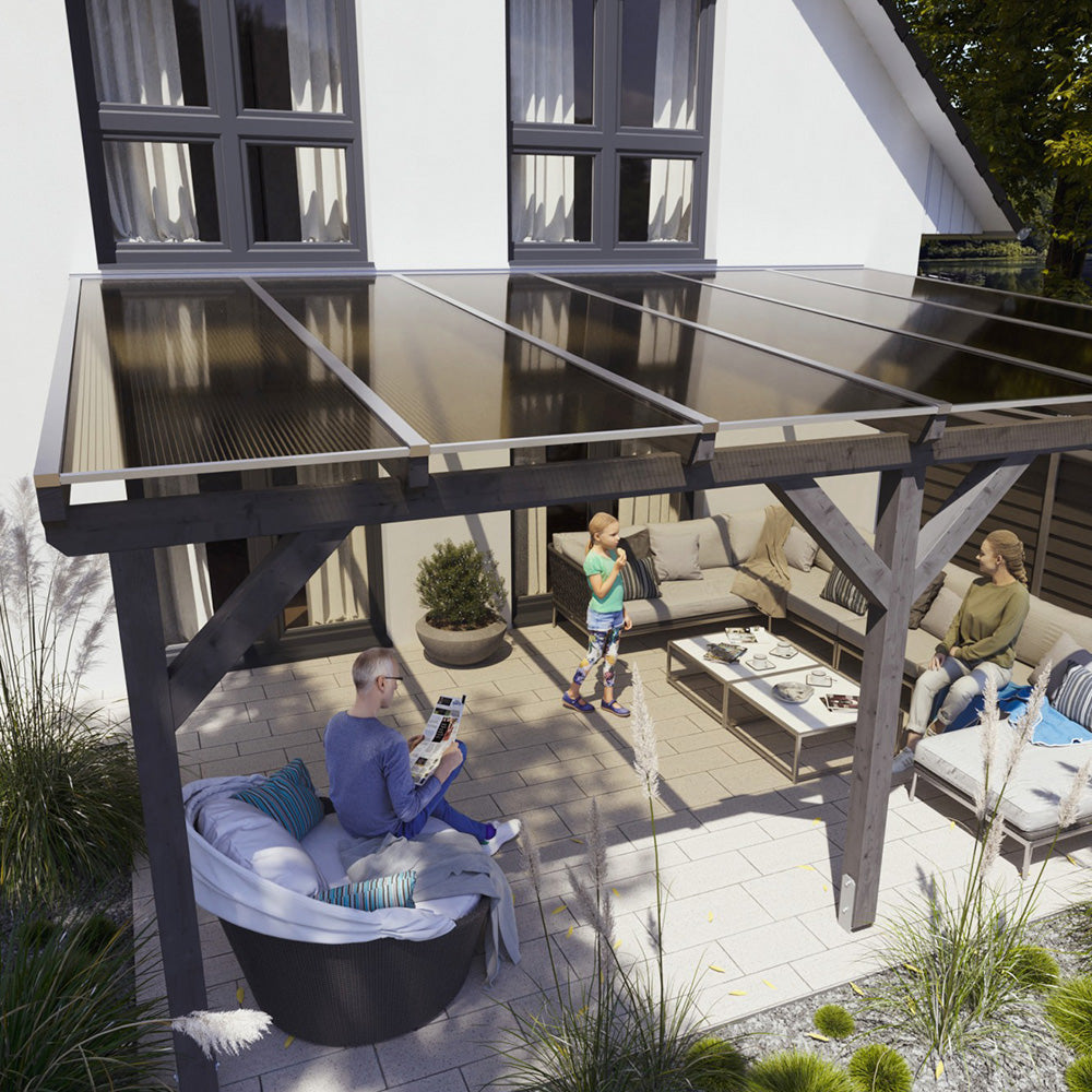 Kombinationssystem: Das Kombi-System ist eine günstigere Alternative für einfache Überdachungen, mit 16 mm Stegplatten. Es besteht aus einem Oberprofil aus Aluminium und einem Unterlegegummi, dass auf dem Sparren befestigt wird. Nur für verzugsfreie Unterkonstruktionen.